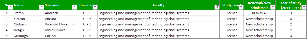 5 din cele 9 burse acordate Universitatii POLITEHNICA din Bucuresti merg la Facultatea IMST, ceea ce arata calitatea studentilor de aici si colaborarea frumoasa dintre cele doua organizatii.
