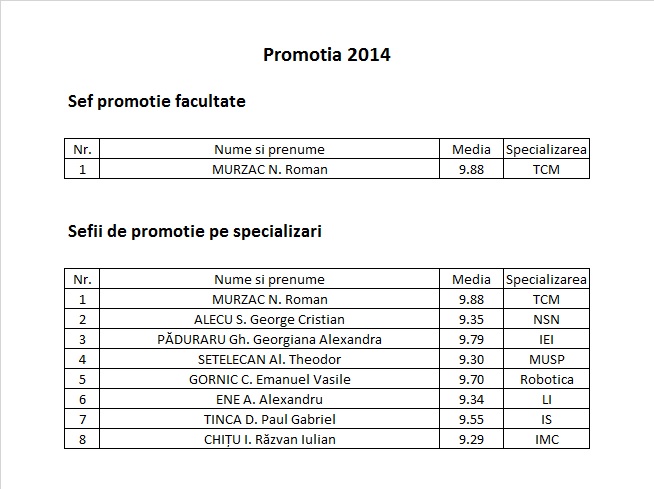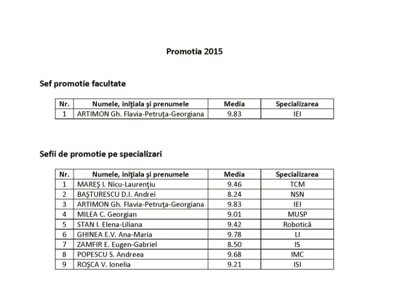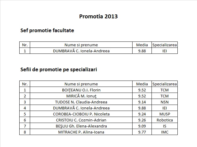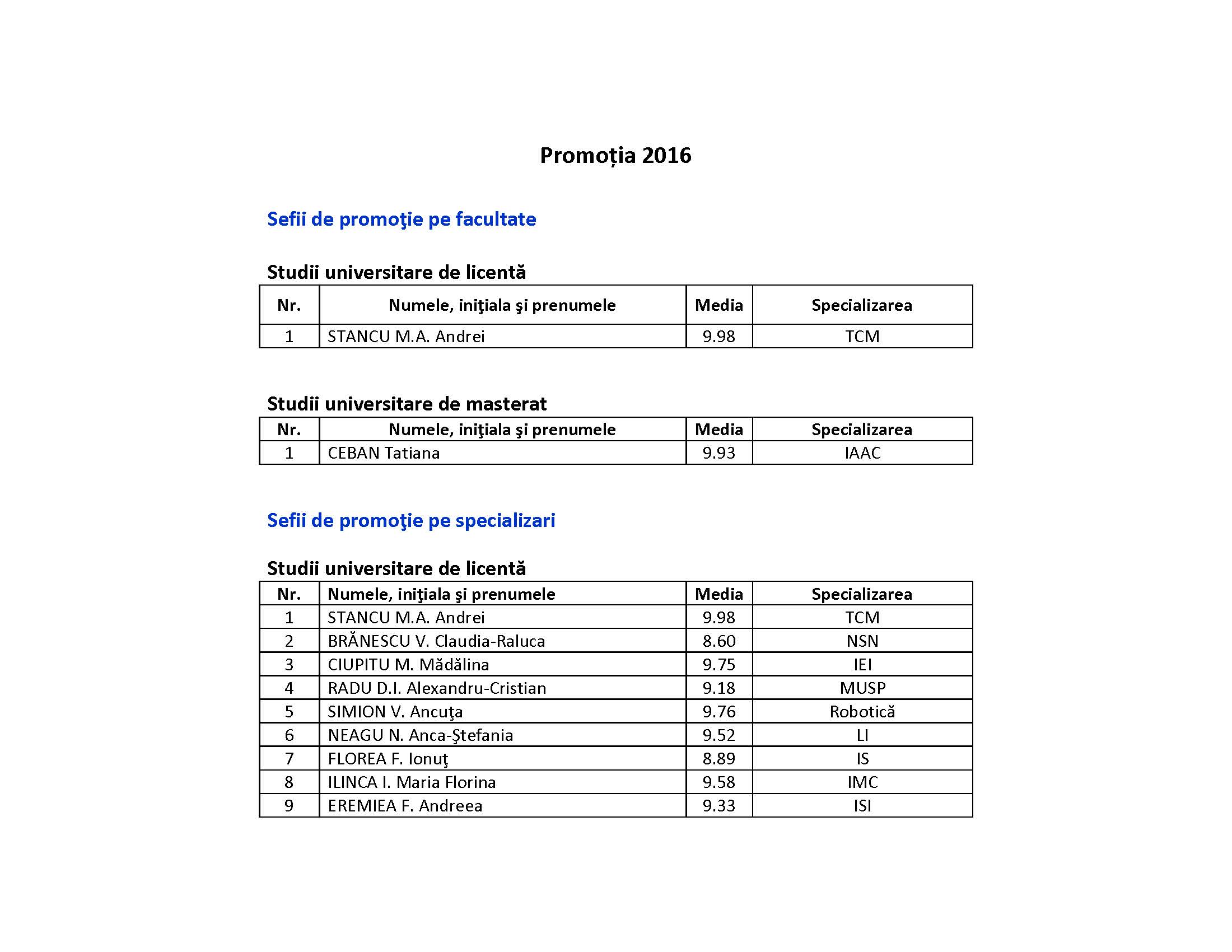 | Promotia 2016 | Promotia 2015 | Promotia 2014 | Promotia 2013 |